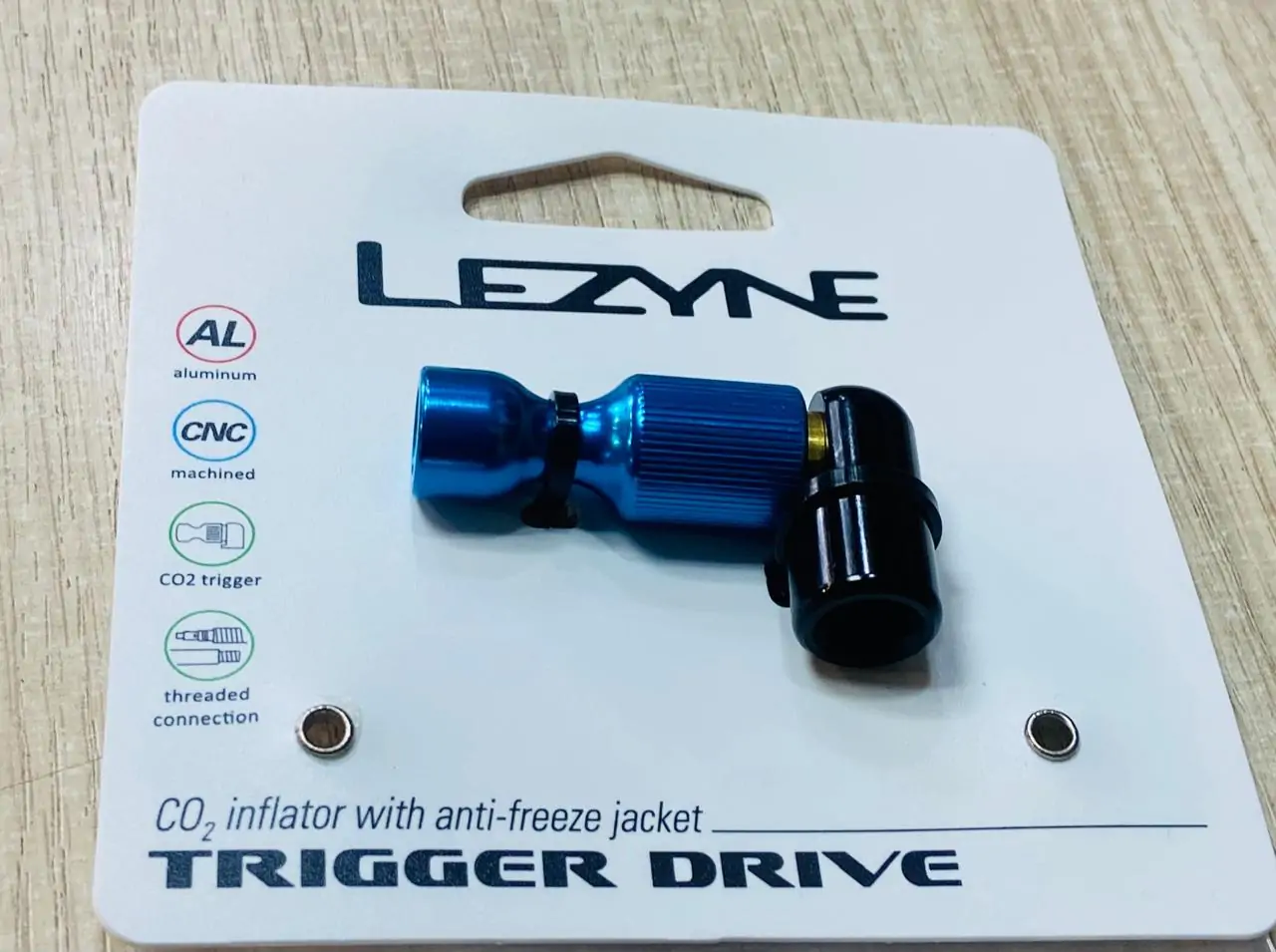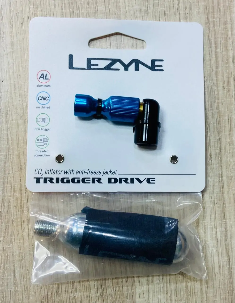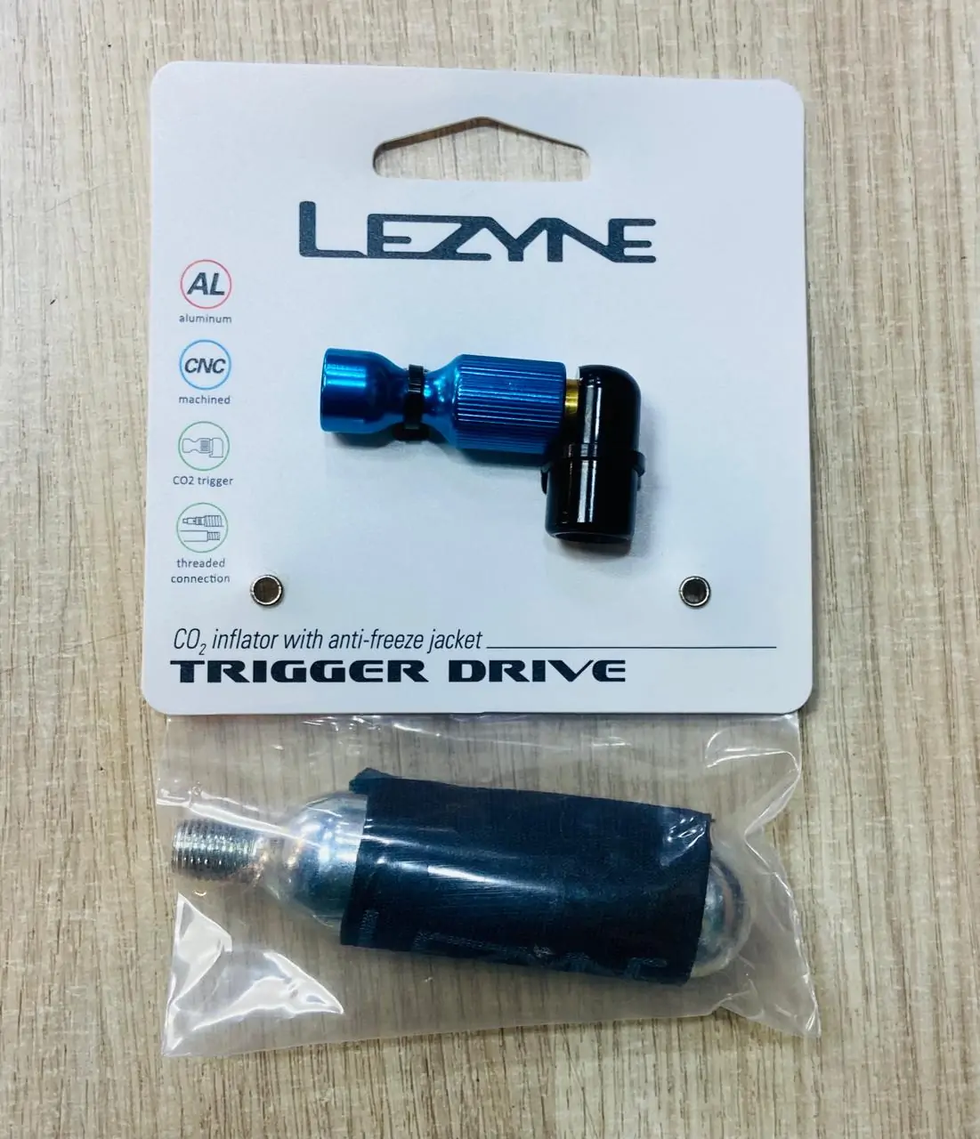 INFLADOR DE CO2 LEZYNE TRIGGER DRIVE BLUE + PIPETA 16g – CICLISMO