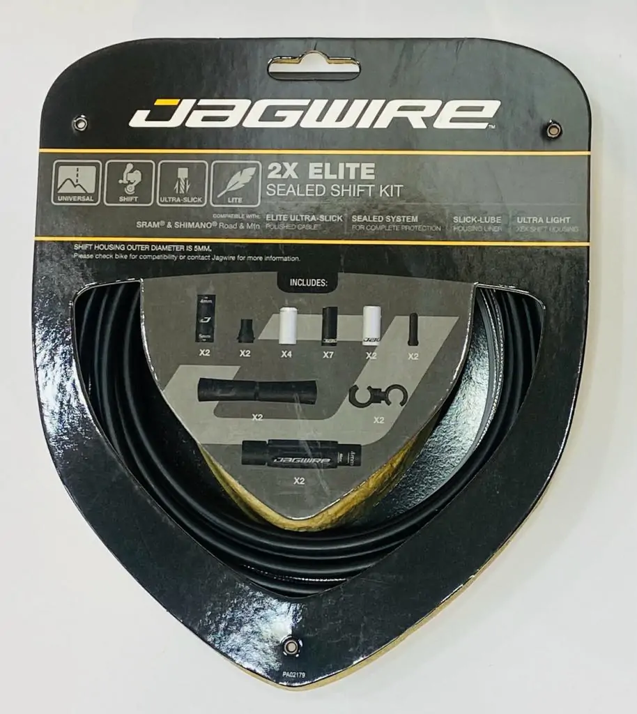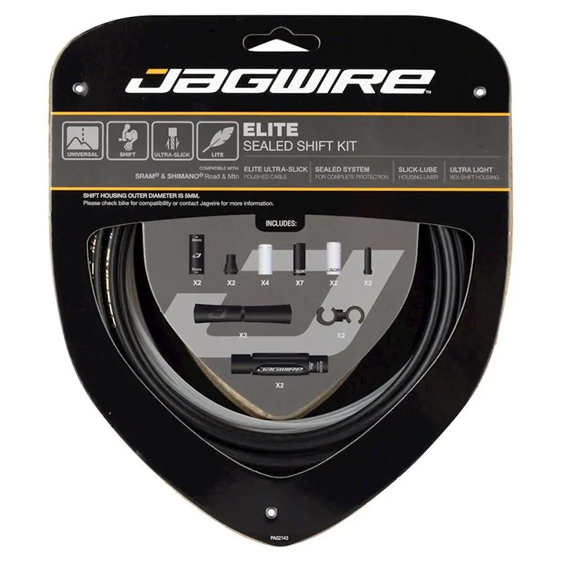 El kit de cambio sellado Elite compatible con grupos biplato 2x utiliza un revestimiento continuo que sella el sistema y lo protege completamente contra la suciedad, el barro y otra contaminación. Disponible también en color rojo, este sistema ofrece la mejor combinación de protección y rendimiento de baja fricción para bicicletas con desviador delantero y trasero. Diámetro exterior: 5,0 mm. Longitud de la funda: 3200 mm. Longitud del revestimiento 2225 mm. Compatibilidad SRAM ® / Shimano ® Carretera y Montaña. Longitud del cable frontal: 2300 mm. Longitud del cable trasero: 2300 mm. Incluye: 1 funda de cambio XEX de 3200 mm. 2 guayas de cambio ultrarresbaladizo STS-EL Elite de 2300 mm. 2 Revestimientos Slick-Lube de 2225 mm. 2 Segmentos de funda de cambio LEX-SL de 4 mm, 300 mm. 4 Tapas de latón abiertas. 7 Tapas de extremo de aleación abiertas para funda de 5 mm. 2 Tapas de extremo de aleación abiertas para funda de 4 mm. 2 Ajustadores en línea indexados profesionales (4 mm /5 mm). 2 Conectores de funda (4 mm / 5 mm). 2 Focas Grub. 2 Tops de tubo 5G. 2 Ganchos giratorios.