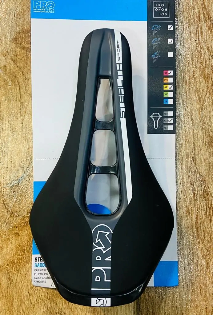 Diseñado para proporcionar una mejor experiencia ciclista con tu bicicleta deportiva, el sillín PRO Stealth Sport se ha diseñado para ciclistas que buscan una posición aerodinámica sobre la bicicleta. Desarrollado para garantizar la comodidad durante recorridos largos y en competición, incorpora un perfil achatado en la punta y un amplio hueco anatómico que reduce la presión, al tiempo que permite mantener una posición de conducción adelantada y agresiva. Están disponibles en anchuras de 142, base de fibra de carbono in-Mould; ligero almohadillado EVA y un duradero forro de PU. El modelo de 142 milímetros pesa 267 gramos.