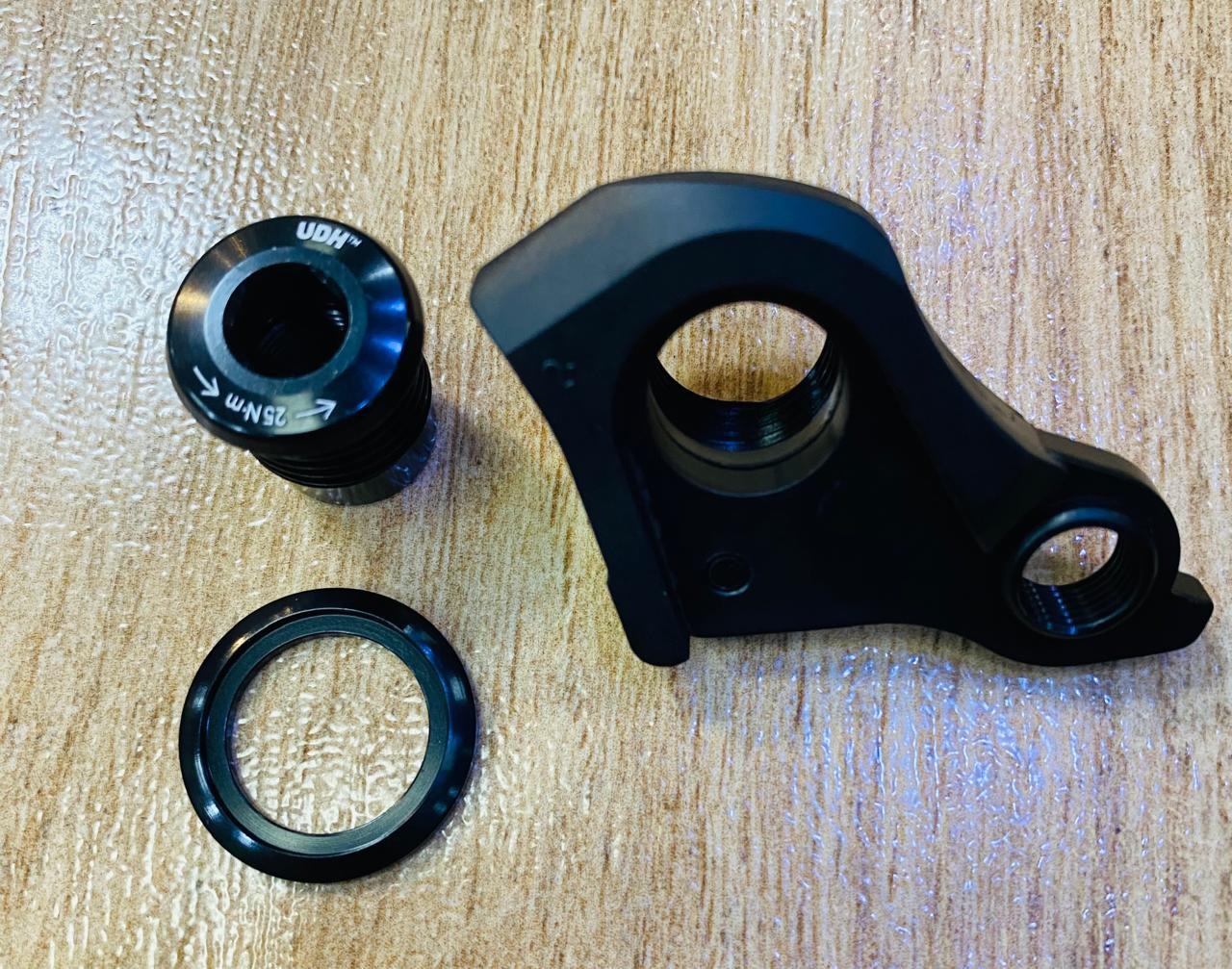 La patilla de cambio universal consolida miles de opciones de patillas en toda la industria. Protege su cambio contra atascos de cadena al girar hacia atrás y fuera del camino, y se desliza ligeramente cuando se encuentra con impactos. Mejora el rendimiento del cambio, garantiza una mejor alineación y funciona con todas las transmisiones. El UDH funciona con todas las transmisiones MTB y E-MTB disponibles en el mercado, desde Shimano a Box y Sunrace.